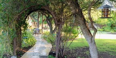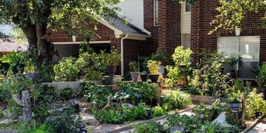 As you arrive, you will be welcomed by established, traditional front yard beds, which include delightfully blooming Mexican Oregano. Proceeding to the back yard, you’ll be surprised at its double depth which offered the homeowner opportunity to fill it with a carefully chosen variety of shade, flowering and fruiting trees, perennials, vegetables, fruits, herbs, and an arbor honoring her husband. Both sun and shade areas feature natives offering seasonal colors, pleasant aromas, and blooms for pollinators. Multiple seating areas encourage you to rest and observe details and an elevated stone patio provides an expansive overview.